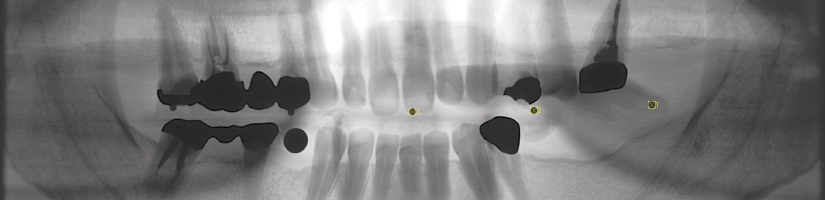 パノラマ写真(写真上)は一般的には全体像を見るのに適したレントゲンですが低解像度なために正確な診断のために追加撮影が必要でしたが、デジタル化によって高解像度化されているためそれだけで必要な情報を得ることができるようになりました。